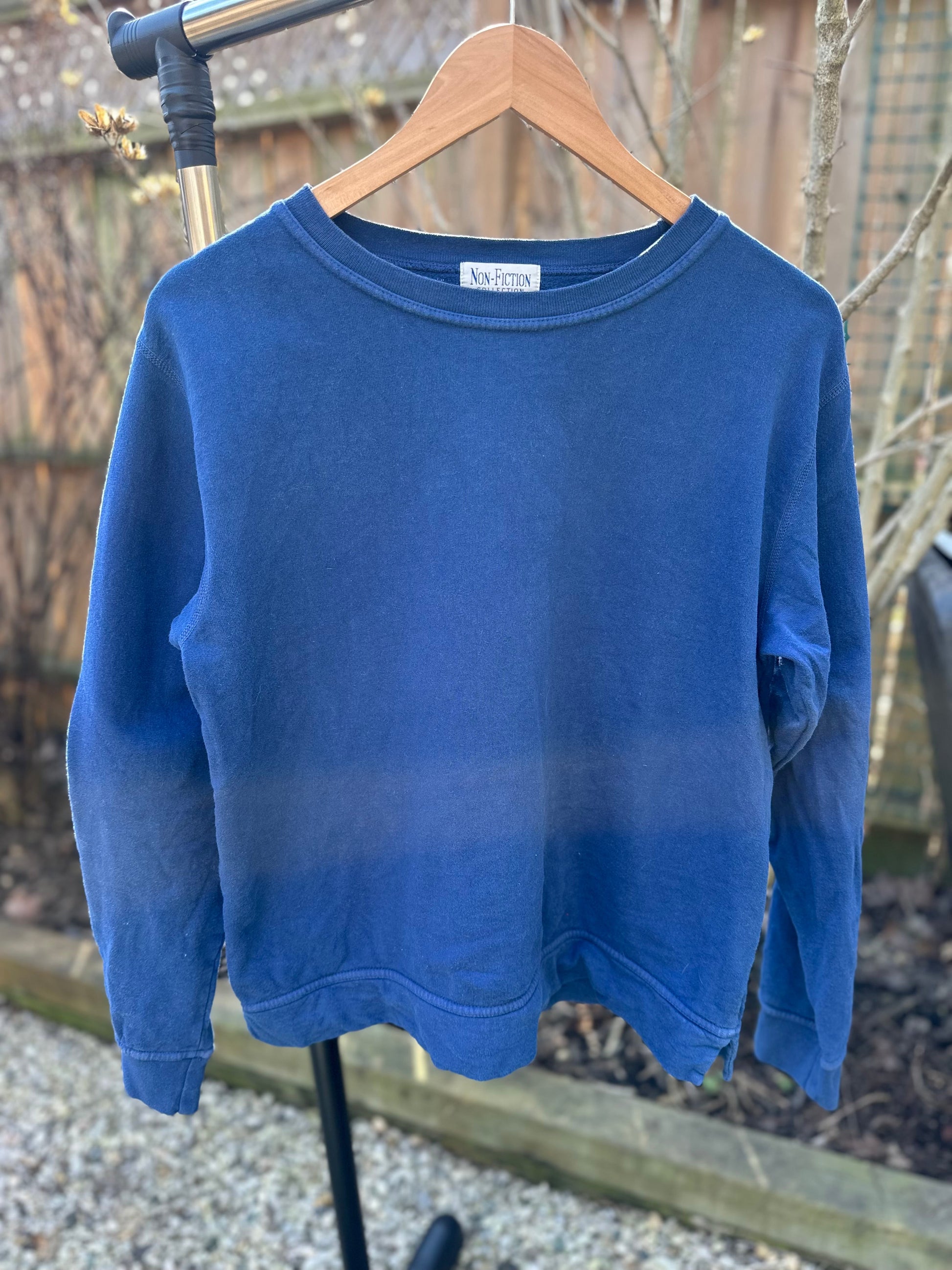NON-FICTION COLLECTION sweatshirt in excellent condition. It's a lightweight, women's medium size, but the measurements are provided for accuracy: pit-to-pit is 20 inches and the length is 22 inches. The sweatshirt is 100% cotton and Canadian-made, which adds to its rarity and quality. The seller emphasizes that these are no longer made and are built to last, making it a unique and durable piece. If you're into rare, high-quality, and timeless clothing, this could be a great find!